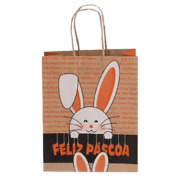 SACOLA PAPEL KRAFT FELIZ PASCOA 17,5X8,5X21,5 C/10 UNIDADES