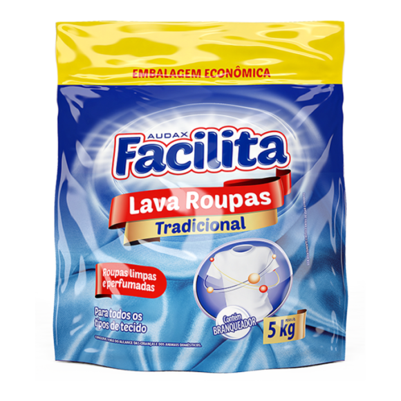 Promovendo uma limpeza profunda, o Lava Roupas Facilita é indicado para lavagem de todos os tipos de tecidos.
