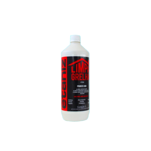 É um removedor desengordurante para grelhas. É um removedor solúvel em água para a limpeza de gorduras acumuladas ou carbonizadas. Dissolve totalmente a gordura com rapidez e eficiência sem deixar resíduos. LIMPA GRELHA ETANIZ é uma combinação quimicamente alcalina composta de agentes que penetram nos pontos mais difíceis e solta gorduras carbonizadas pelo calor. Eficaz na remoção e desincrustação de óleos e gorduras. Proporciona uma ação rápida sobre as gorduras carbonizadas e outras incrustações.